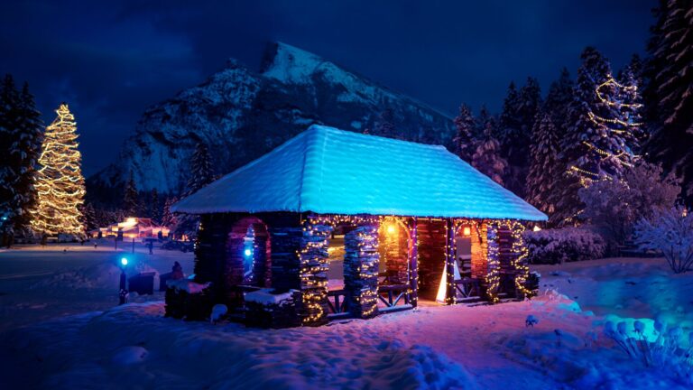 Spread throughout the Cascade of Time Garden, In Search of Christmas Spirit is an outdoor Christmas experience available on select nights of the holiday season. The experience follows an enchanted trail and is delivered by illuminated sculptures, an engaging story and captivating sound effects, It tells the story of the wildlife of Banff National Park and their appreciation for the safe space that Banff National Park has gifted them.