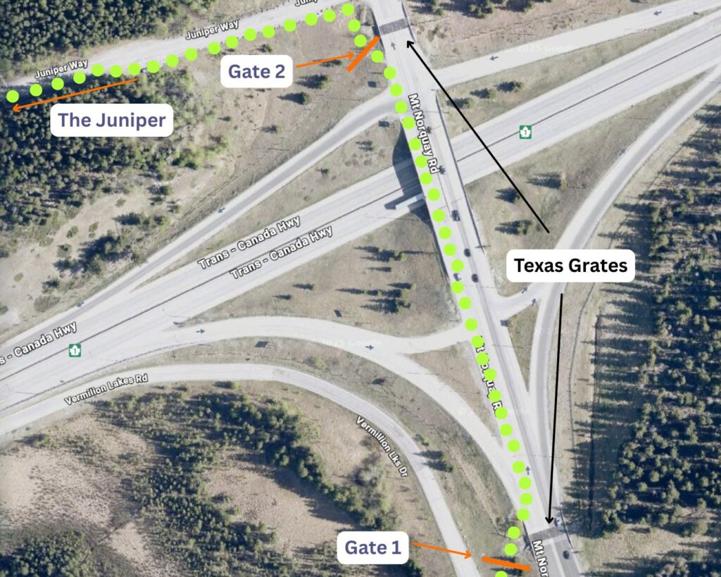 Walking Map from Banff Downtown - Gates for bypassing the Texas Grates.